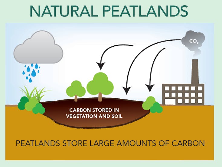 Peatlands are the largest natural terrestrial carbon store. The area covered by near natural peatland worldwide ( >3 million square km) sequesters 0.37 giga tons of carbon dioxide (CO2) a year – storing more carbon than all other vegetation types in the world combined.